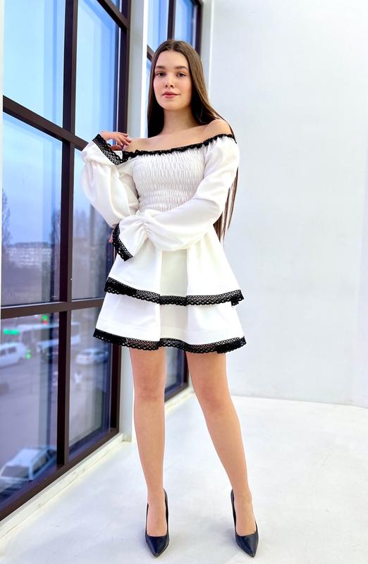 через кнопку купить только полная оплата!!!! Платье с кружевом. Тканина- супер софт. Цвет - молочный. 152 длина от плеча - 70см, полуобхват груди - тянется до 41см, рукав - 62см. Мс