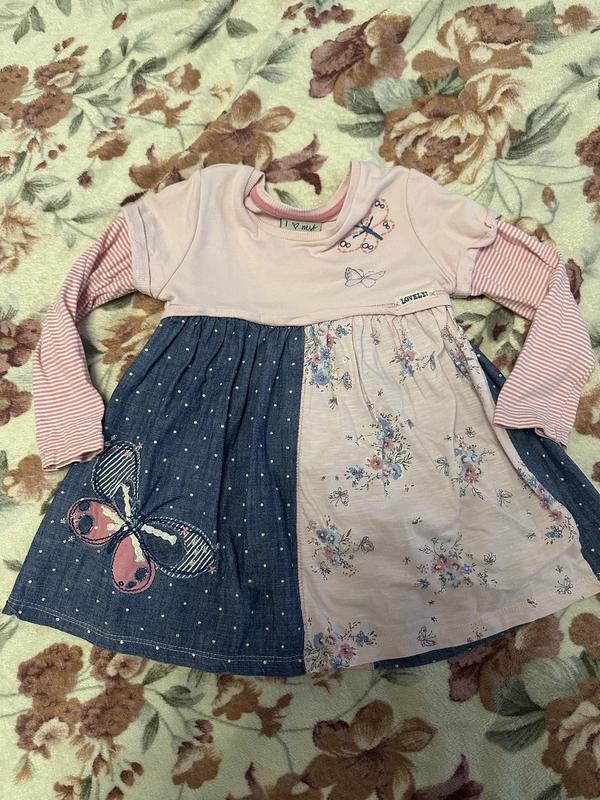 Сукня з довгим рукавом і спідницею для дівчинки 24-36 місяців. Зріст 92 см. Стан дуже хороший. Основна частина: 100%бавовна. Підкладка 100% бавовна. Спідниця 100% поліестер.