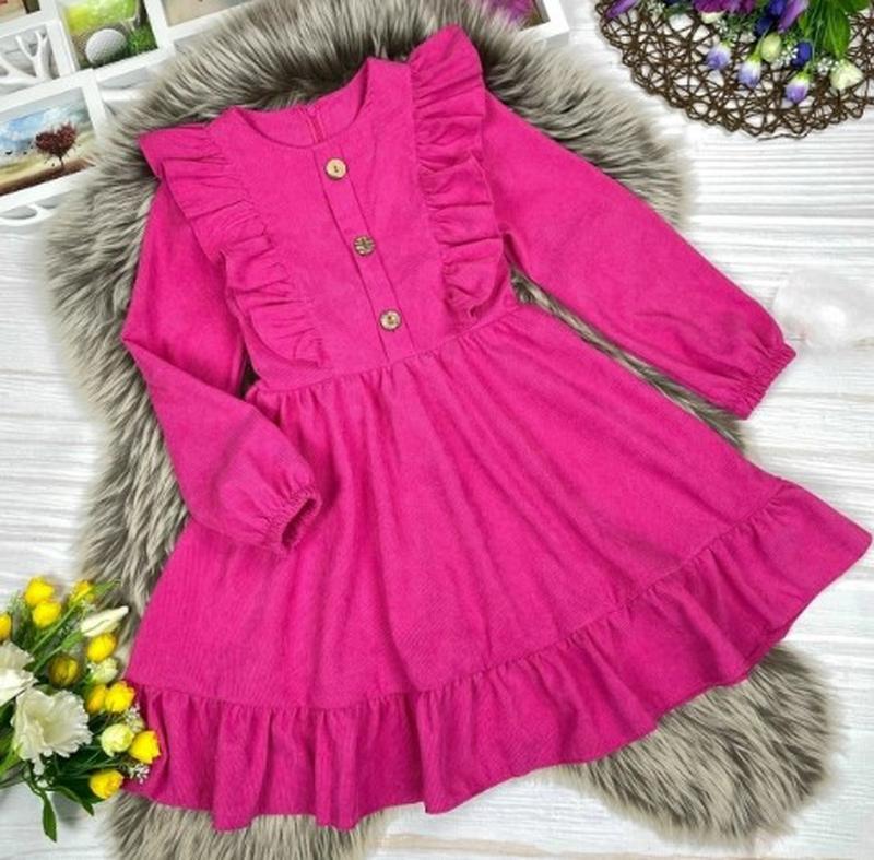 Нарядное стильное платье для красавиц 💗 Ткань вельвет, платье завязывается под поясок, спереди украшено пуговицами, сзади застегивается на молнию. Замеры: длина/пог/рукав от плеча 116 - 63/30/39 122 - 66/31/44 128 - 69/33/47 134 - 72/35/49 с.