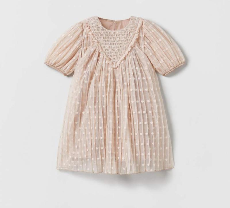 Платье из легкой, полупрозрачной ткани, имеющей мелкие вышитые точки по всей поверхности. На 4-5 лет. Стан идеален. Дизайн: Лиф: Верхн платья (лиф) имеет текстуру "smocking" ( сборка на эластичных нитях), которая создает мелкие складки. Рукава: Короткие, объемные, слегка присборенные и плиссированные. Юбка: Широкая, плиссированная, с вертикальными складками. Длина платья примерно до колена. Общий стиль: Платье выглядит нежно и воздушно, что подходит для праздничных событий .Замеры ⤵️⤵️⤵️ Длина- 63см Плечи-24см Пог-36см 💗💗💗 пересылаю новой почтой и укрпоткой. есть наложенный платеж по предоплате. более подробно об условиях читайте в описании в разделе "О МЕНЕ "