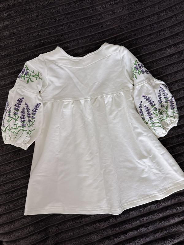 Сукня в ідеальному стані, одягнута лише один раз Розмір 86-92 Довжина - 50 Півобхват грудей - 32 Рукав від горла - 35 (рукав фонариком)