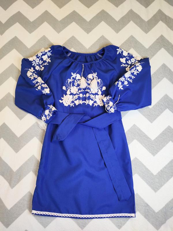 Вышитое платье для девочки, рост 122-128, но ориентируйтесь на замеры. Тканина габардин, не тягнеться. Под рукой надо чуточку подшить.(Показано на последнем фото).