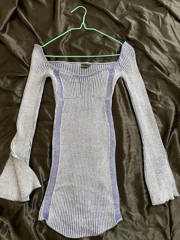 Сукня вʼязана, коротка, відкриті плечики, розрізи на рукавах