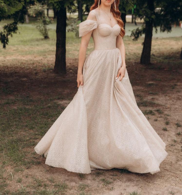 Сукня S -xs. Золотистая. Рукава съемные. Одягалась один раз на 1 годину.