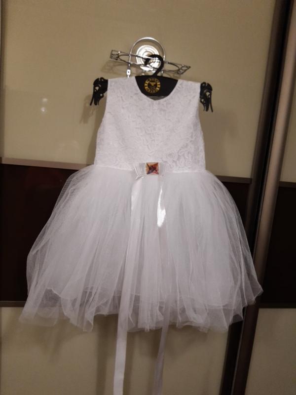 Платье праздничное детское,3 года90/104 девочке,в идеальном состоянии. Низ: Три слоя фатина,четвертый слой – подкладка. Верх: Двойной атлас,позади молния, переднюю гипюр,бант с хрустальным украшением, как хамелеон меняет свою расцветку, талия регулируется лентой. Размеры: Длина-от плеча до самого низа-60см. Длина -от плеча до талии-23.5см. Длина от плеча до точки под ручкой (пройма)-13.5см. Длина от проймы (под ручкой) до пояса-9см. Длина от пояса до низа-36.5см. Плечи-25см. Об,єм-31см. Ширина талии-29.5см.-уменьшать лентой.