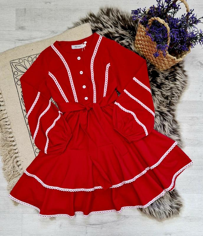 Стильное платье с кружевом для красоток Тканина супер софт Поясок в комплекте Рукав и в поясе на резинке Гудзычки рабочие КАЧЕСТВО ЧУДОВАЯ РЕКОМЕНДУЯ 🥰 длин/горловины/пог 134-140р-73/55/36