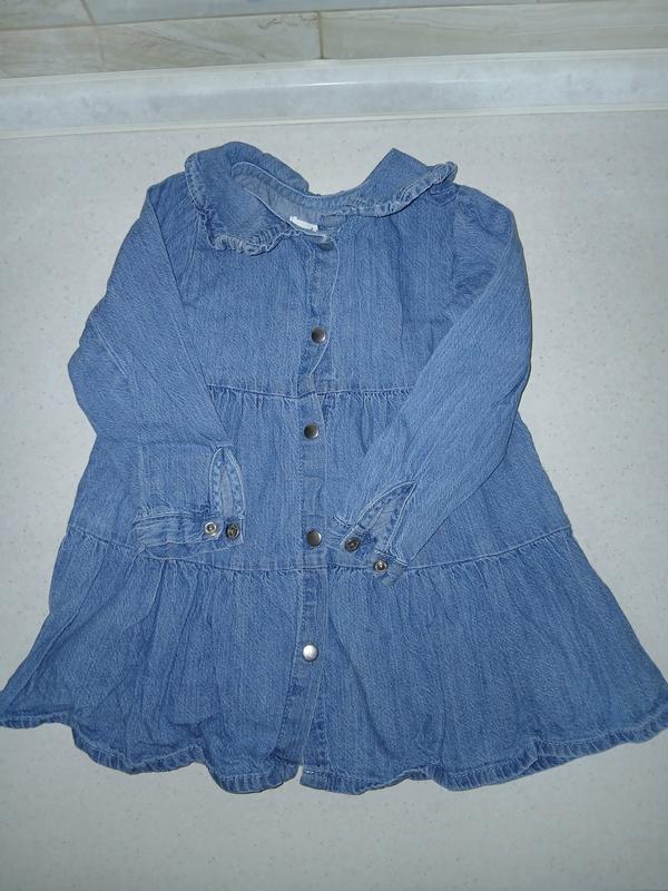Джинсовое платье, состояние идеальное, без дефектов, размер 92(можно ранее). Длина 42, ширина 27, рукав от плеча 32.