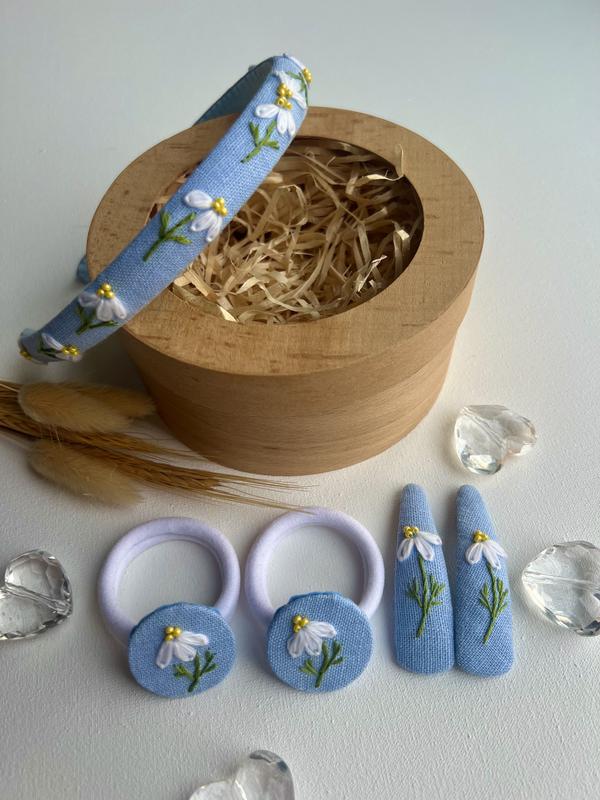 Вышитый подарочный набор: обруч: ширина 1.5 см. 260 грн., заколочки 6 см. 90 грн/шт., резиночки: d.3 см. 90 грн./шт. Продажа как набором, так и обруч + заколочка или резиночка. В резиночке есть механизм открытия, со временем можно изменить. Обруч имеет мягкий подклад, размер универсальный, примерно с 3-х лет и на взрослого также подходе.🎀 Качественные материалы, красиво держат, не преломляют волосы. Станут отличным аксессуаром или подарком. Цена окончательная. Также можно комбинировать с другими, запить, не все успеваю выставить. Есть вышитые бантики, резиночки, воротнички. Оплата на картку.