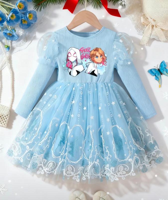 🌹праздничное детское платье с принтом Гвен Стейси (женщина - паук) 🌹 трикотаж рубчик, хорошо тянется два слоя фатина + подкладка рисунок накат пояс на резинке украшено глиттерными рисунками ЗАМІРИ от плеча до пояса / длина полная /ширина по груди / рукав от плеча ✅5р 23/60/29/36 ✅6р 24/65/30/40 ✅7р 25/70/32/43 ✅8р 27/75/34/47 похибка +-1см НАЯВНОСТЬ 5р 5шт 6р 5шт 7р 5шт 8р 5шт кидсбейбишоп