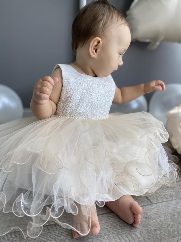 Нарядне платтячко бежевого кольору, верх молочний, одівали на 1 рочок