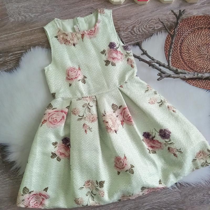 детское платье светло- мятного цвета с пышной юбкой. Платье украшено ярким цветочным принтом, состоящим из крупных розовых и сиреневых роз с зелеными листьями. Основные детали одежды: ткань с блестящей текстурой ткани, не тянется. Фасон: платье без рукавов, с круглым вырезом горловины, отрезное по линии талии. Юбка со складками, что добавляет объема. Эта модель подойдет для торжественных событий или праздничных мероприятий. Стан - идеальный На 7-8 лет Замеры ⤵️⤵️⤵️ Длина- 72см Пог-34см Пот-34 см 💗💗💗 пересылаю новой почтой и укрпоткой. есть наложенный платеж по предоплате. более подробно об условиях читайте в описании в разделе "О МЕНЕ "