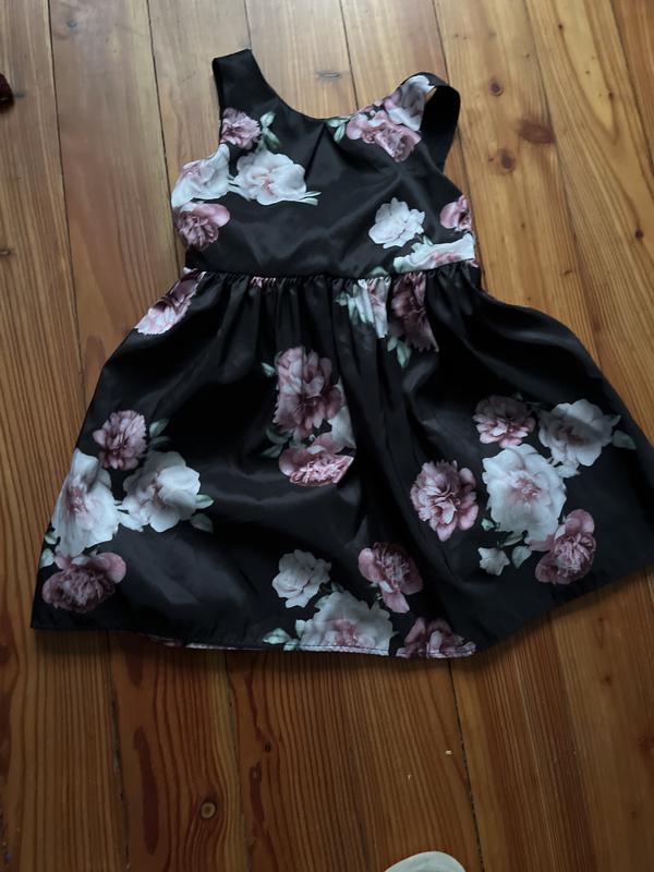 Це чорна дитяча сукня для вечірок із квітковим принтом від бренду Next. Вона має атласний вигляд, прикрашена великими рожевими та білими квітами та характерним великим бантом ззаду. Інформація про товар Бренд: Next Стиль: Святкова або вечірня сукня Особливості: Квітковий принт, гладка тканина (схожа на атлас або жакард), великий бант ззаду, бавовняна підкладка для комфорту