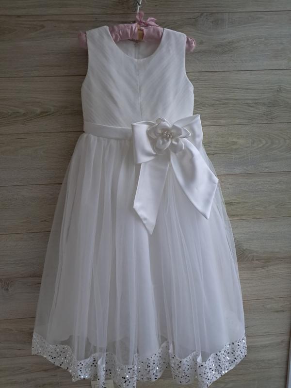 Нарядное пышное фатиновое белое платье 9-10-11л