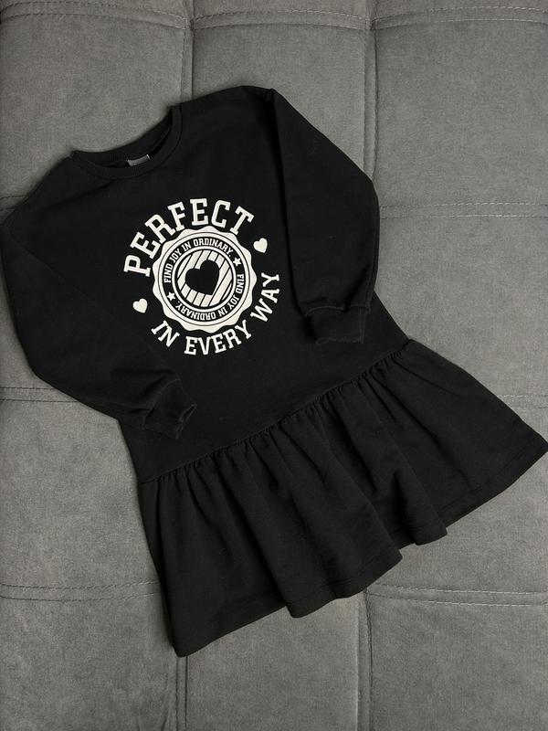 Сукня чорного кольору Бренд LC Waikiki 5-6 років 110-116 см Заміри: Довжина сукні 60 см Довжина рукава 44 см від шва горловини Напівобєм грудей 35 см