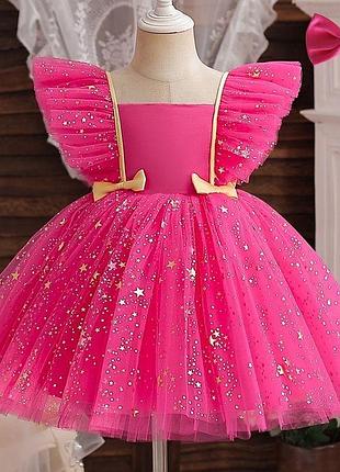 Невероятно красивое нарядное платье для ваших принцесс 🔥 Украшена звездочками, которые очень красиво сверкают (не осыпается )😍🛑😍 Идеально подойдет для праздников, фотосессий, ранков и дней рождения ❣️🔥🥰 Ткань -атлас +многослойный фатин💥 Подкладка -хлопок Сзади застегивается на молнию. 90 - длина 51 см,шир 24 см 100 - длина 54 см,шир 25 см 110 - длина 58 см,шир 26 см 120 - длина 62 см,шир 28 см
