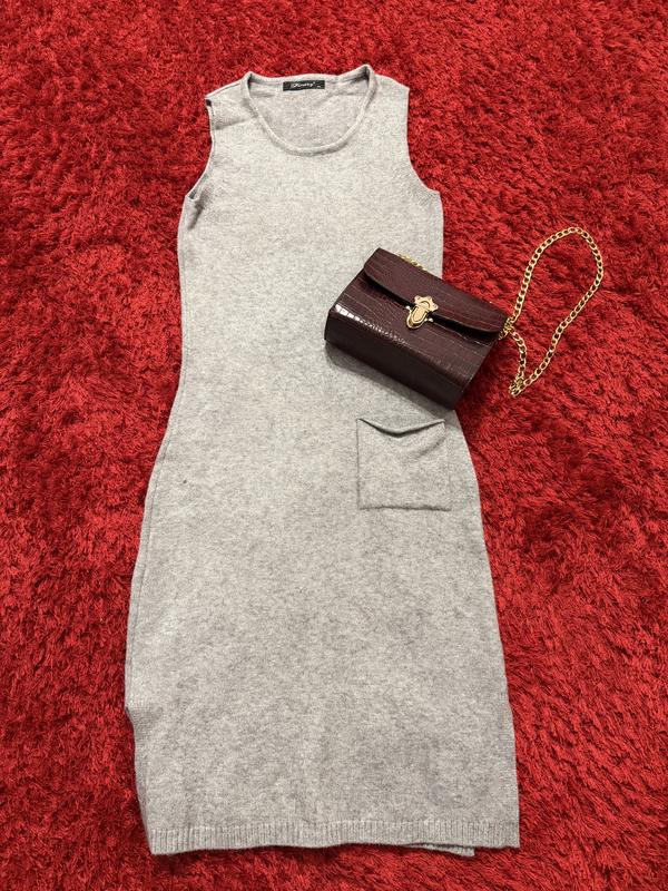 Тепле сіре плаття розміру M / S , без рукавів , з 1 кишенькою