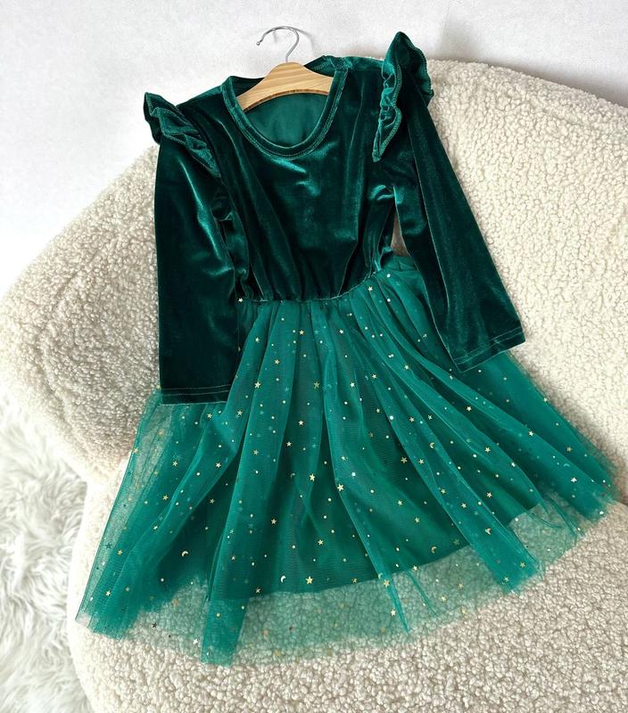 📝 Невероятного красоты праздничное платье💚 🖤 Ваша девочка в нем будет самой красивой на празднике или фотосессии😍 🖤 Верх - велюр, очень красиво переливается 🖤 Два слоя фатина, украшенные пайетками 🖤 Подкладка - хб 🖤 На плечиках рюшики 🖤 Пояс на резинке 🖤 Хорошо держит форму Замеры 100-Длина 54 см рукав от плеча 33 см пояс 21*2 см 110-Длина 59см рукав от плеча 35см пояс 21*2см 120-Длина 65см рукав от плеча 37см пояс 22*2см 130-Длина 69см рукав от плеча 39см пояс 22*2см 140-Длина 74см рукав от плеча 42см пояс 22*2см Замеры сделаны одной ростовки Допустима похибка +-1-2 см фото релиал