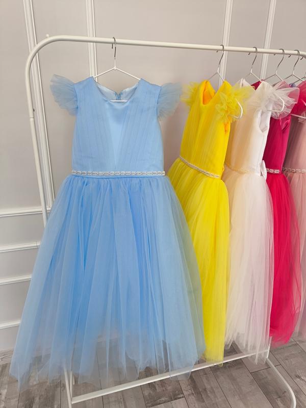 Сукня на випускний та святкові події, подовжена: 🌷 Верх фатин, атласна підкладка; 🌷 Ззаду бант (знімається), замочок та корсет; 🌷 Низ 4 слої фатину та підкладка; Довжина / висота корсету / ширина 6-7р. 97 /28/ 31 см.