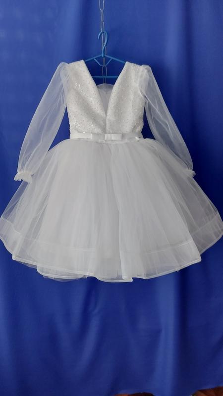 белый Платье на выпускной и праздничные события: 🌷 Верх фатин, атласная подкладка; 🌷 Сзади замочек и корсет; 🌷 Низ 4 слои фатина и подкладка; Длина /полный обхв. талии 5-6р. 80 / 64 см.-отправка 3-5 дней