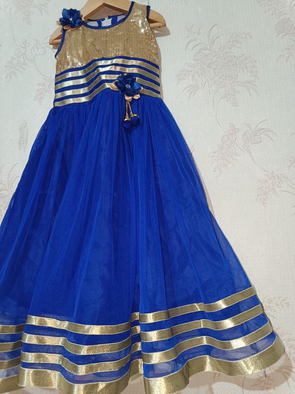 Пышные платья на любое празднование 🎀 7-8 р. Яркое платье электрик с золотыми полосками, также есть глубокий темный синий с вышивкой и бусинами, и многие другие в отличном состоянии. На темном платье где-то на фатинчике был как порезик, сложно найти и увидеть, эта дефектик легко прячется,бо фатин многослойный