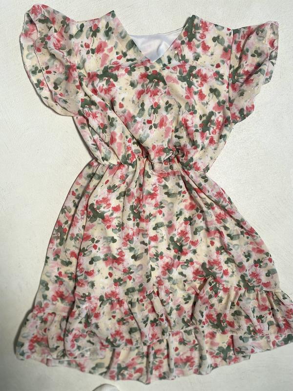 Стан нової речі. Цікавий фасон, гарний квітковий принт., спереду коротша. Довжина спереду 71, ззаду 77см. Є ще дитячі речі .