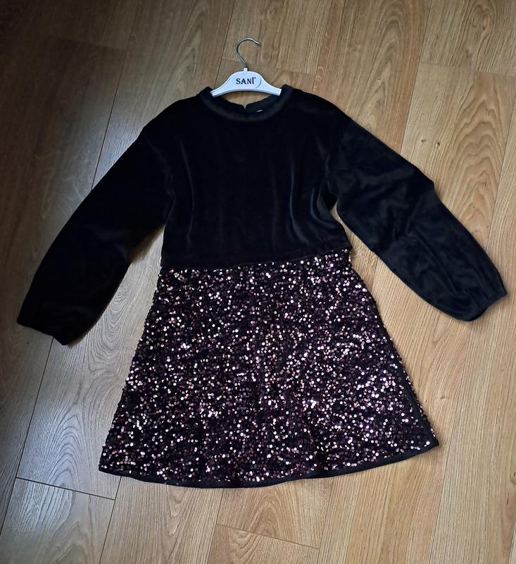 Нарядное черное бархатное платье в пайетках для девочки с длинным рукавом