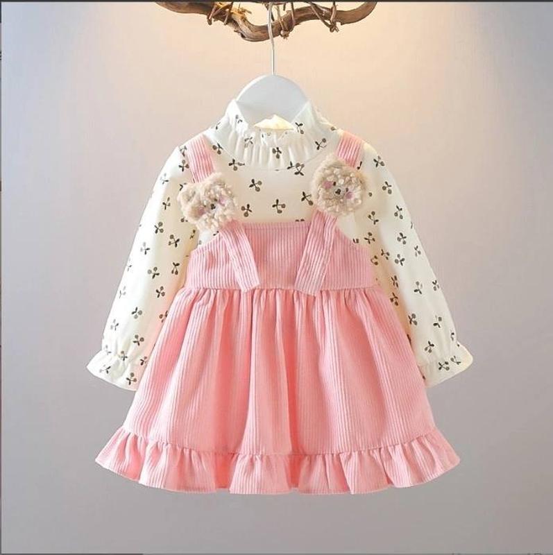 П 🎯 В НАЯВНОСТИ 615 грн Код 95 📝 Очень красивое и нежное платье❤ 🖤 Верх ткань - хлопок, с красивым принтом 🖤 Низ - вельвет 🖤 Горловина и рукава на резиночке 🖤 Украшено плюшевыми мишками, не снимаются Размер 80(3 шт) 90(3 шт) 100(4 шт) 110(4 шт) Замеры 80-Длина 39 см Рукав от плеча 27 см объем груди 22*2 см 90-Длина 41 см Рукав от плеча 29 см объем груди 24*2 см 100-Длина 43 см Рукав от плеча 30 см объем груди 26*2 см 110-Длина 45 см Рукав от плеча 33 см объем груди 27*2 см Замеры сделаны одной ростовки Допустима похибка +-1-2 см