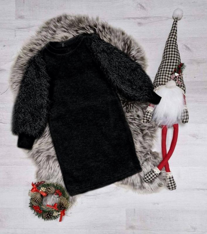 Теплое нарядное платье для красавиц Ткань ангора вязка, хорошего качества Шикарные рукава травка перышки на сетке. замеры: длина/пог/рукав от горловины 122 р. -66/32/47 од.д. Р.
