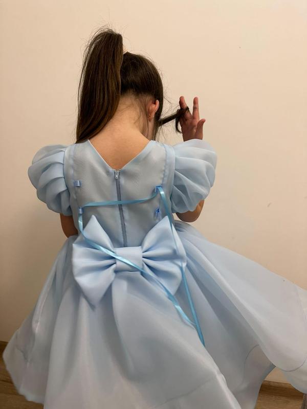 платье очень красивое, фото на ребенке, а видео обзор,размер 110-120,зад затягивается лентой по типу корсета
