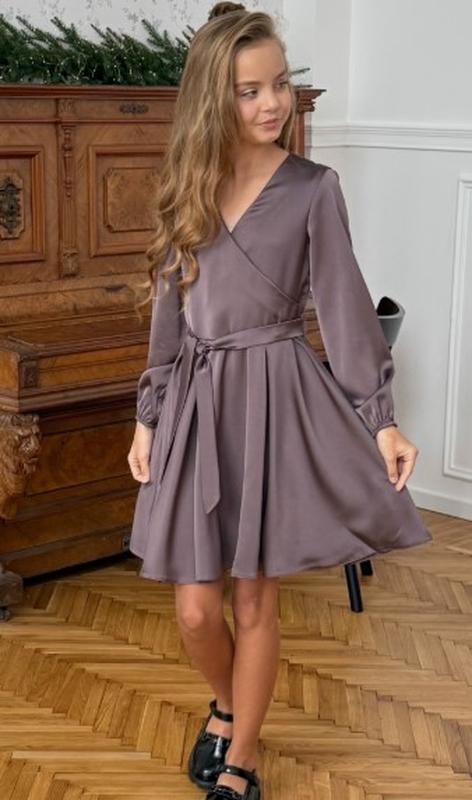 Нежное нарядное платье для красавиц Производитель: Украина Ткань дабл шелк Армани под поясок, рукав на резинке, очень нежная модель Цвет - шоколад пог/длина/рукав от плеча ✅134-34/74/47 ✅140-36/78/50 ✅146-37/81/52 ✅152-38/86/54 скл. пл.