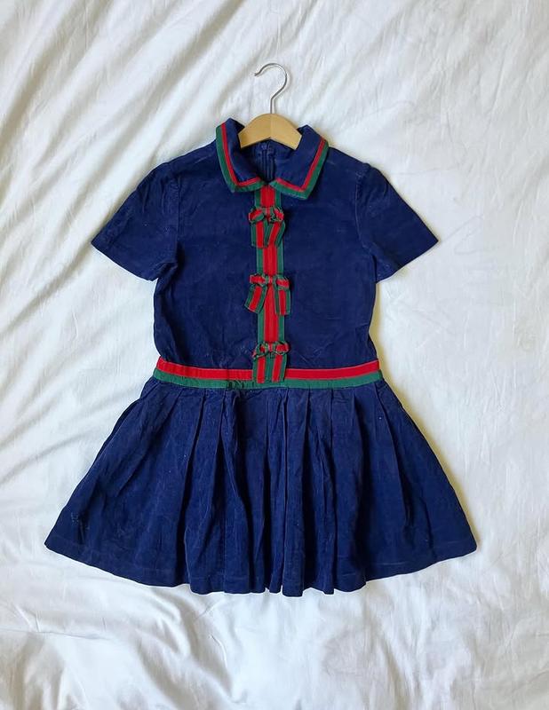 Сукня Gucci 7-8 років; Нажаль ззаду знизу є дефект (є на фото), він не дуже помітний, та все ж Вельветова сукня з бантиками