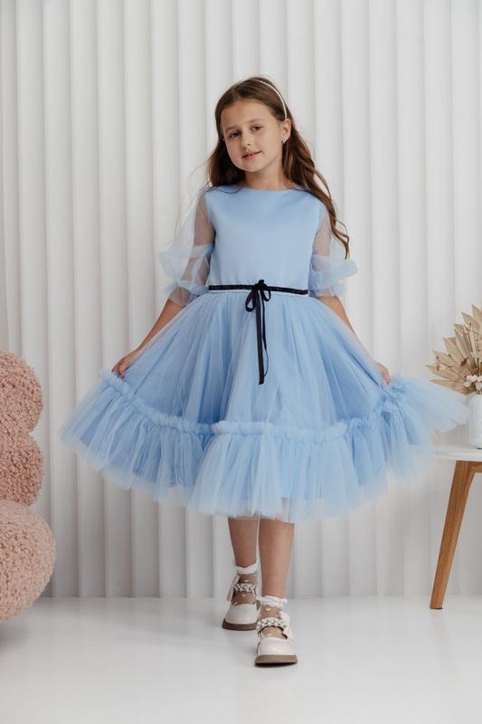 🥰🥰Шикарна сукня для принцес!!!👑👑 Тканина - королівський атлас та євросітка По спинці застібається на блискавку колір - БЛАКИТНИЙ Рукав - 3/4 122-1 шт 128-1 шт 134-1 шт 💜122р.довжина сукні - 71,пог - 34 💜128р.довжина сукні - 74,пог - 35 💜134р.довжина сукні - 78,пог - 36