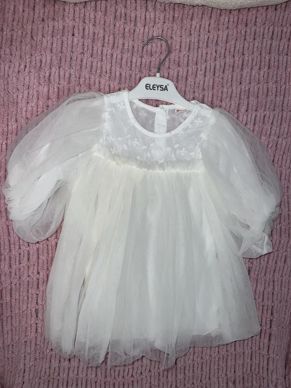 ⭐️ Неймовірно ніжна святкова сукня з повітряного фатину. Верх оздоблений тонкою мереживною вставкою з квіточками, обʼємні рукавчики створюють казковий вигляд. Ідеальний варіант для фотосесії, хрестин, дня народження чи інших особливих подій. Стан – відмінний, без дефектів. Одягали 1 раз на святкування рочку! ✔️ Розмір: 80 см ✔️Матеріал: фатин + підкладка ✔️ Застібка: на кнопках/ґудзику ззаду Пишіть, також є білі туфельки, обруч та бантики для повноцінного комплекту на ваше свято! Рада, якщо наші речі прослужать ще одному малюку 💗