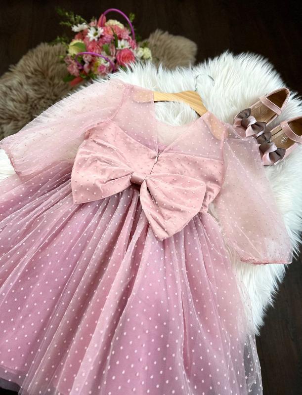 Праздничное платье для девочки розовое бант пушистое платье фатин