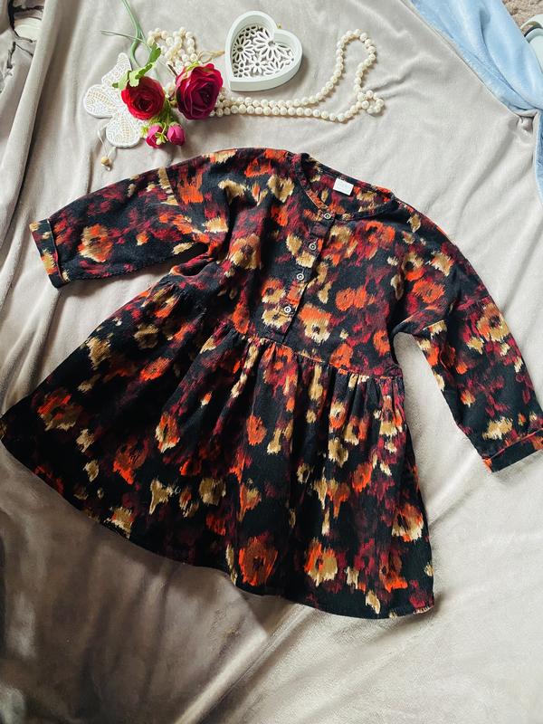 Дуже цікаве вільветове платтячко Next, мені принт нагадує вишиванку трошки. Стан ідеальний. Розмір 104 (3-4 роки), але найкраще орієнтуватись на заміри. Довжина по спинці 53 см. Ширина по шву посередині 38 см. Довжина рукава від горловини 39 см. Дод. фото та заміри на вимогу.