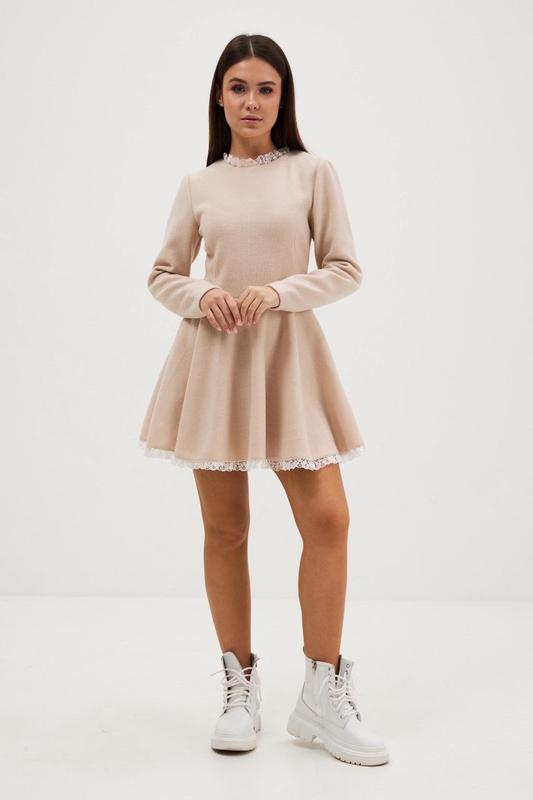 Стильное нежное платье приталена модель Сзади глубокая молния Тканина ангора-вʼязка очень приятная на ощупь украшена кружевом Супер качество! Цена 1170 грн Рост/длина/пог/рукав от плеча похибка+-2см 146/70/34/50 152/72/35/52 158/75/37/55 164/80/38 57 ▪️N-15