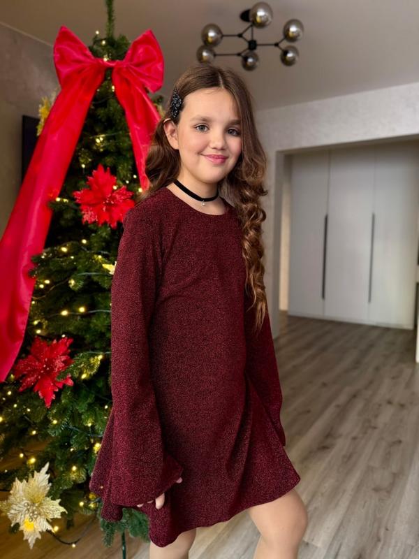 НОВОРІЧНА СУКНЯ "ФЕЄРІЯ" колір: бордо тканина: стрейчевий трикотаж з люрексом Дуже гарно сяє! Фото блиск не передає! Застібається на таємну блискавку та має шнурівку на спинці для регулювання повноти на талії. ✅Доступне предзамовлення! ЗАМІРИ: р.140 довжина сукні/довжина рукава/пог 73/57/38см р.146 довжина сукні/довжина рукава/пог 75/59/39см р.152 довжина сукні/довжина рукава/пог 77/61/42см р.158 довжина сукні/довжина рукава/пог 80/62/44см р.164 довжина сукні/довжина рукава/пог 82/64/46см Довжина рукава вказана від плеча!