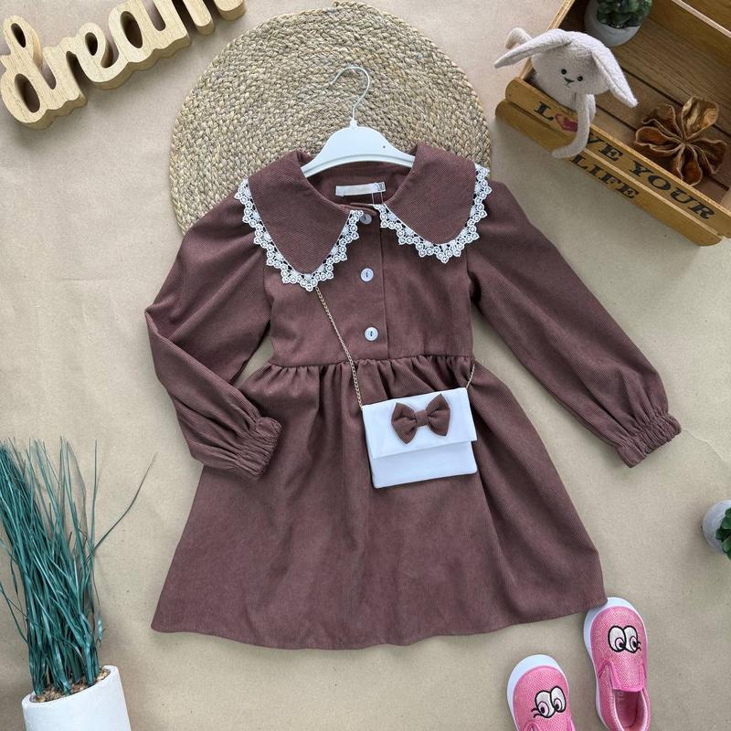💥 Оплата на карту 💥 💥 Отправка товара из состава в течение 5 рабочих дней 💥 Нежное детское платье с воротничком – воплощение элегантности и удобства. Ткань – вельвет рубчик отличного качества. Спереди - застегивается на пуговицу, сзади - пояс. Классический дизайн и нежные детали делают образ изящным и праздничным! В комплекті – сумочка. Размеры: 110 – рукав 40 / длина 57 / полуобхват груди 31 116 – 42 / 59 / 32 122 – 45 / 64 / 33 128 – 47 / 66 / 35 134 – 50 / 68 / 37