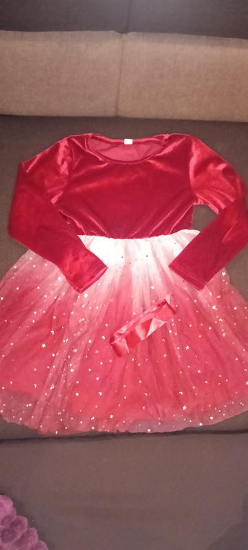 Праздничное платье из бархата. Ткань тянется, есть атласный поясок. Юбка из двойного фатина-сетки, на верхней приклеенные звездочки