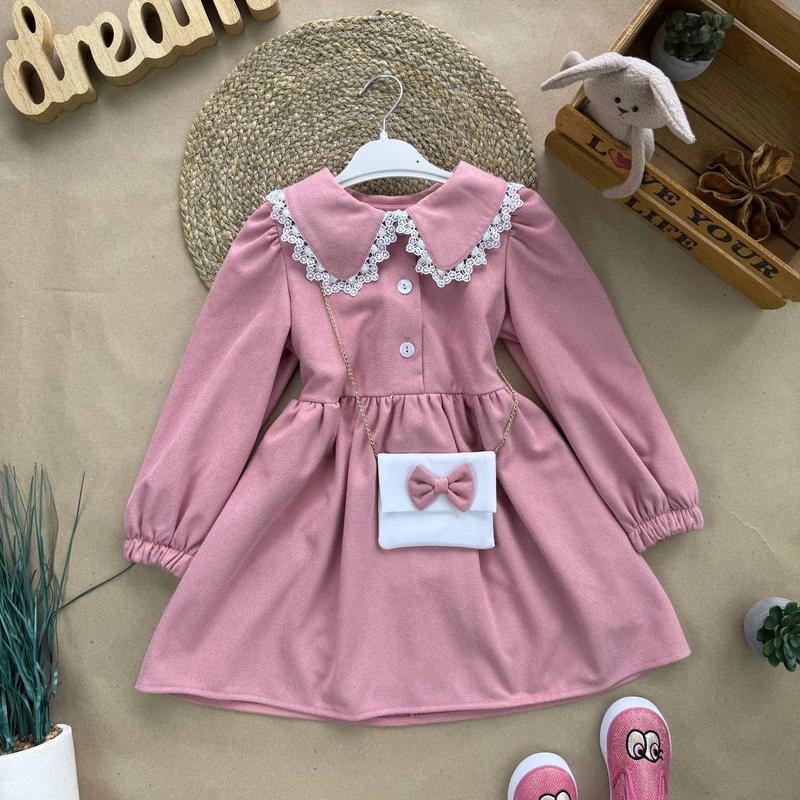 Нежное детское платье с воротничком – воплощение элегантности и удобства. Ткань – вельвет рубчик отличного качества. Спереди - застегивается на пуговицу, сзади - пояс. Классический дизайн и нежные детали делают образ изящным и праздничным! В комплекті – сумочка. Размеры: 110 – рукав 40 / длина 57 / полуобхват груди 31 116 – 42 / 59 / 32 122 – 45 / 64 / 33 128 – 47 / 66 / 35 134 – 50 / 68 / 37