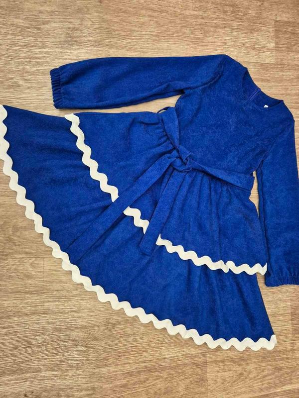 Стильное нежное платье для красавиц 💗 Ткань микровельвет, мягкая и приятная к телу, платье сзади застегивается на молнию, завязывается под поясок Замеры: длина/ширина под руками/рукав от плеча 122 - 70/32/45 128 - 74/33/47 134 - 77/35/50 140 - 79/36/53 с.