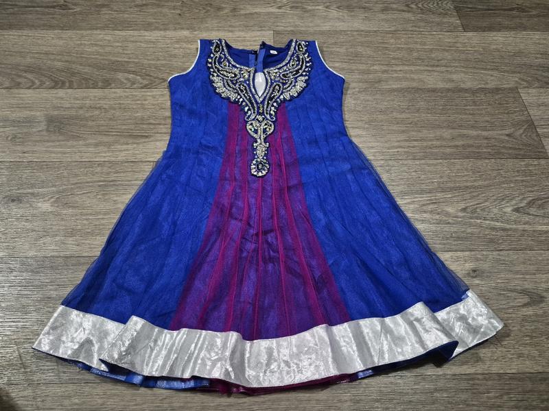 Платье на 7-9 лет, вышитое стразами, по спинке молния. Заміри є на фото.