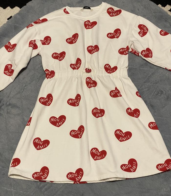 Тепла сукня на дівчат віком від 10 до 13 років в сердечка, у відмінному стані, без дефектів. Фірмовий George. Заміри: довжина 78, рукав від шиї 62, ОГ 42-46, ОТ 33-38, добре тягнеться
