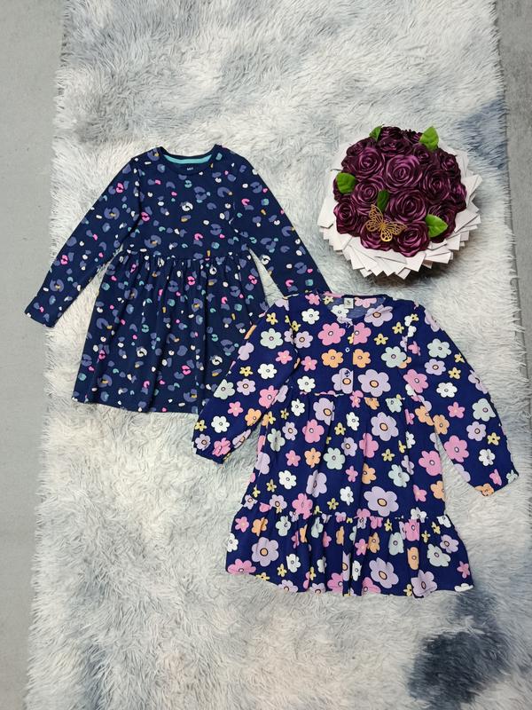 Стан идеален. Цветочное платье 100% вискоза, другой 100% хлопок. Очень красивые платья. Цена за 2 шт. Цветочное платье по бирке идет на 3-4 р, но большемерит. Длина 57-59 см, пог.32 см, рукав 45-47 см от шеи.