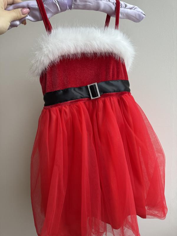 Дуже класний гарний костюм на дівчинку. 4-5-6 років. В стилі санта клауса. На ваше свято. Довжина з бретельками 58 Ширина де пояс 30 Накидка Плечи ширина 29 Рукав від плеча 38