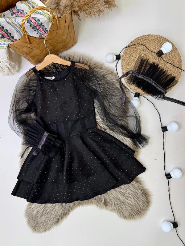 Вишукана святкова сукня імітація корсету по талії(з фатіну попереду) двошарова спідниця та прозорі рукави роблять її неперевершеною по спинці блискавка є додаткові зʼємні елементи декора для проява фантазії Тканина-замш із камінням та фатін СУПЕР ЯКІСТЬ!
