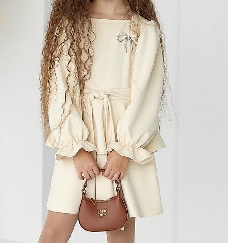 святкова сукня прикрашена бантиком з камінчиками Поясок в комплекті,взаді застібається на блискавку Тканина замш діагональка 116-довж. 61 см, шир 27 см, рукав від шва 44 см 122-довж. 62 см, шир 30 см, рукав від шва 48 см 128-довж. 65 см, шир 32 см, рукав від шва 49 см 140-довж. 72 см, шир 35 см, рукав від шва 57 см