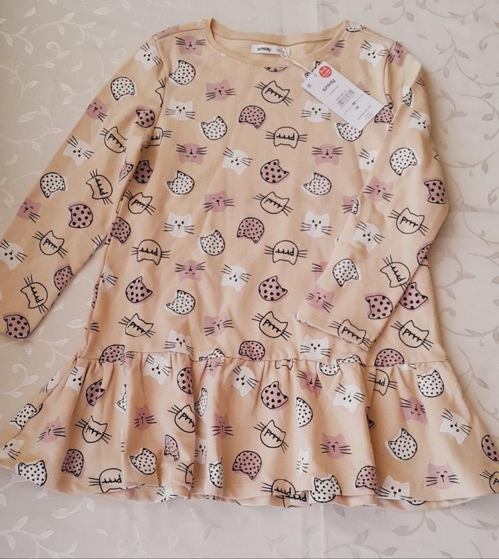 Новое красивое платье с котиками, размер 122см. Длина - 60см, рукав - 41см, плечи - 31см, полуобхват груди - 36см, бедер - 41см.