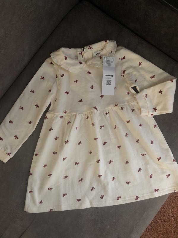 Нова сукня від сінсей! Дуже гарна якість, святковий принт, не одягали ні разу, помилились з розміром. По бірці 116 см, заміри: довжина 56, пот 35, рукав 39