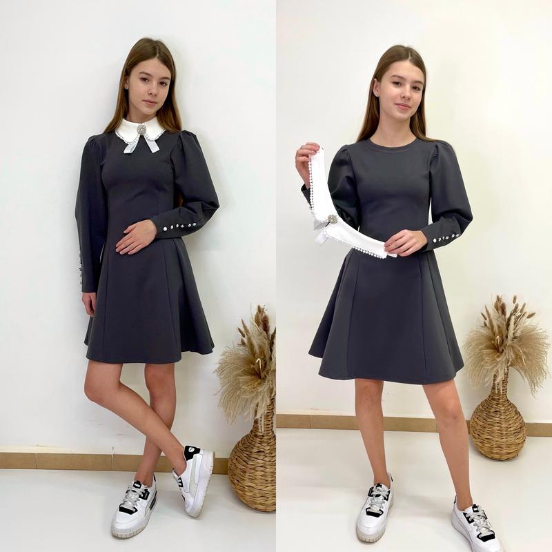 Сукня "Перлинка" тканина Алекс имеет умеренный стрейч за счет необычного рукава украшенной пуговицами, та воротника который добавляет платья изысканности и элегантности, платье становится праздничным и в то же время очень удобно в использовании, на любой случай Воротник земный украшен брошью (может быть другой) СУПЕР КАЧЕСТВО! цена 1120 грн рост/длина/пог/рукав от плеча похибка+-2см 140-146/70/30/45-3шт 146-152/73/31/47-1шт 152-158/76/32/50-1шт 158-164/80/33/53-1шт 164-170/83/34/56-1шт
